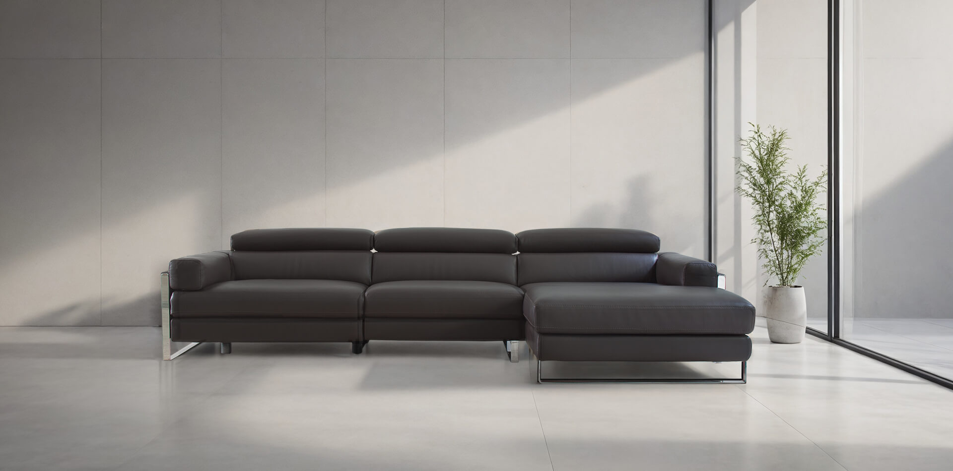 宽敞座椅和方形扶手为特色。其闪亮的钢制底座进一步加强了